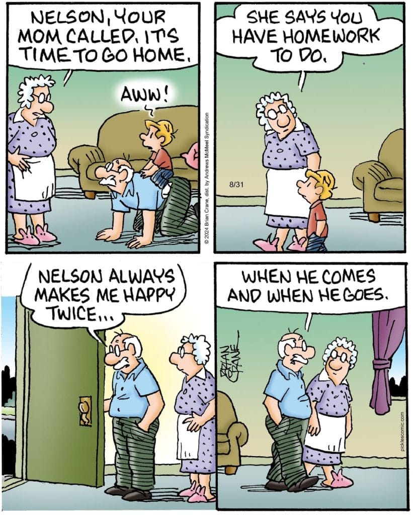Nelson’s grandparents reveal that he makes them happy “twice: when he comes and when he goes.” It’s the kind of joke only daily family humor can pull off—equal parts sweet and just a little bit savage.