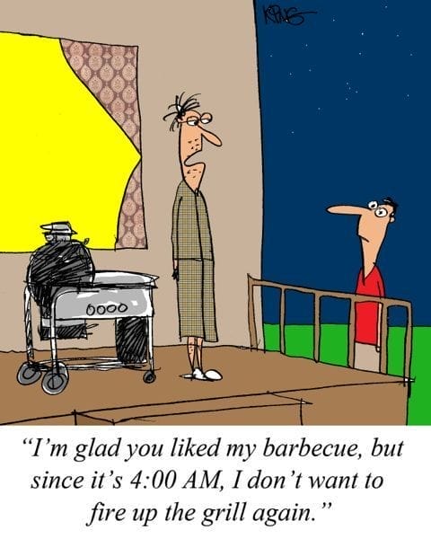 Some guests don’t know when to quit. Firing up the grill at 4 a.m.? Hard pass—unless breakfast counts as BBQ.