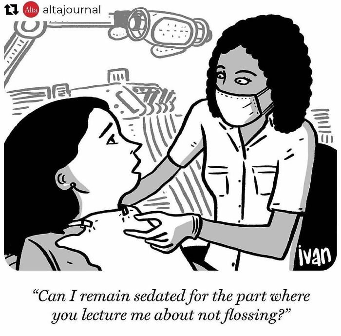 Ever wish you could stay sedated just to avoid your dentist’s guilt trip? This cartoon takes that little anxiety and turns it into a hilarious one-liner of oral hygiene despair.