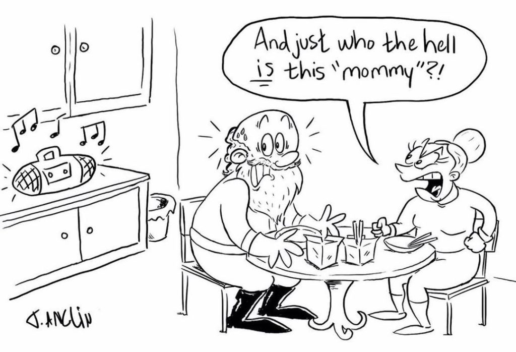 Santa is grilled by Mrs. Claus about this mysterious “Mommy.” This strip is holiday humor with a dash of domestic drama. Sorry, Santa—no amount of milk and cookies will get you out of this one.