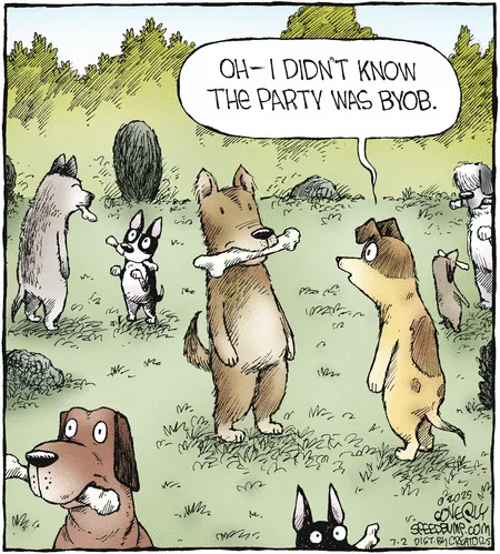 At this dog park, “bring your own bone” is the hottest trend of the season.