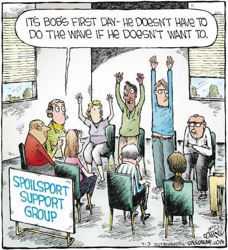 There’s always one person who won’t do “the wave.” But hey, we support your right to be a party pooper.