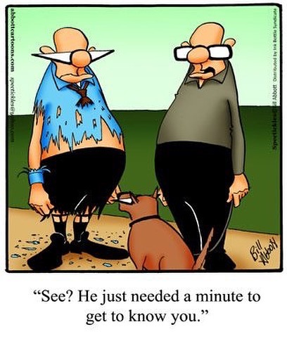 Dogs may be man’s best friend, but first impressions can be rough. This gag perfectly captures the awkward patience of dog owners everywhere.