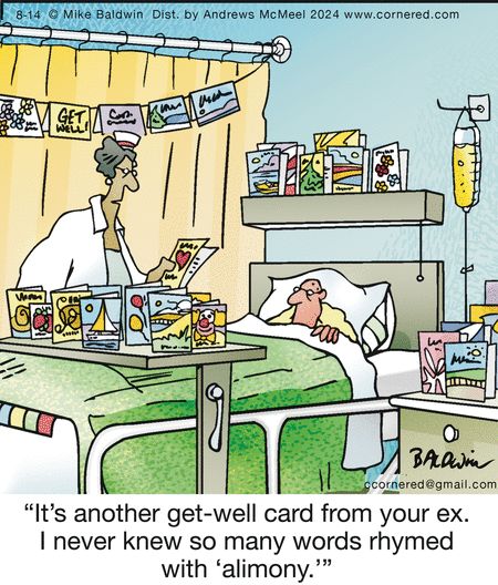 A hospitalized man receives one too many “get-well” cards from his ex. Turns out, alimony has lots of rhymes—and none of them are nice. This daily life funny gem nails the awkward side of breakups with Baldwin’s signature sting.