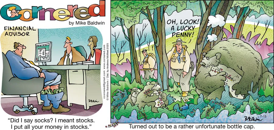 All comics reviewed are the creative work of Mike Baldwin, creator of the long-running syndicated comic “Cornered.” To see more of his humor, visit the official GoComics Cornered page, where new strips are posted regularly.