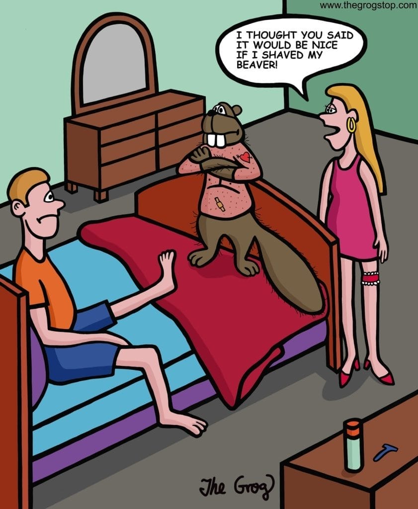 The phrase “shave your beaver” gets way too literal in this suggestive comic. Grog pushes the envelope with wordplay that’s not only inappropriate but irresistibly funny. If you like your cartoons with innuendo and a touch of shock value, welcome to paradise.