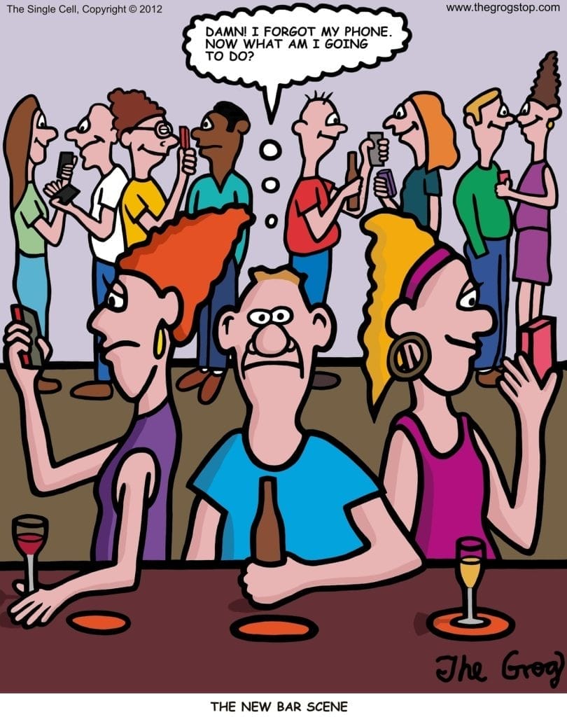 Nothing says “existential dread” like being phone-less at a bar in 2025. This comic nails the quiet panic of social isolation without a screen to hide behind. Everyone’s glued to their phones while one poor soul contemplates his social death. A digital-age tragedy, hilariously drawn.