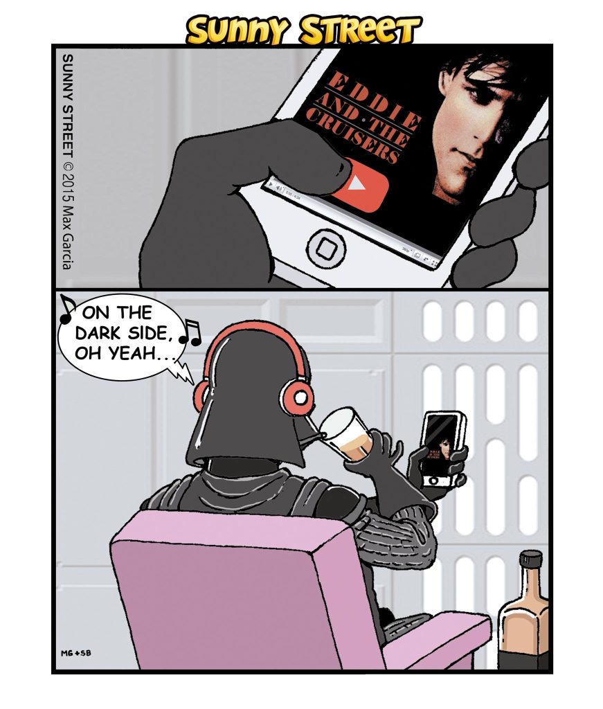 Darth Vader lounges while jamming to “On the Dark Side.” It’s oddly wholesome. Who knew the Dark Lord of the Sith liked retro tunes and whiskey?