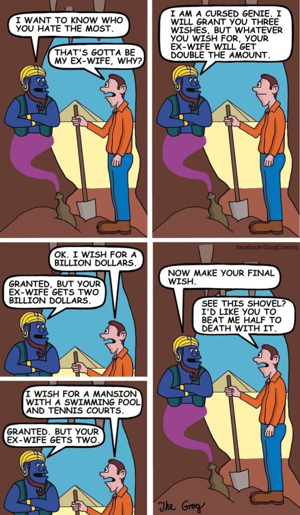 In this hilarious bar scene from Grog Comics, one guy notices his drinking buddy always checks his pocket before ordering another whiskey. Intrigued, he finally asks why. The punchline? The man carries a photo of his wife, and the moment she starts looking attractive to his beer goggles, he knows it’s time to head home. It’s a clever twist that pokes fun at drinking habits and married life with sharp, laugh-out-loud humor.