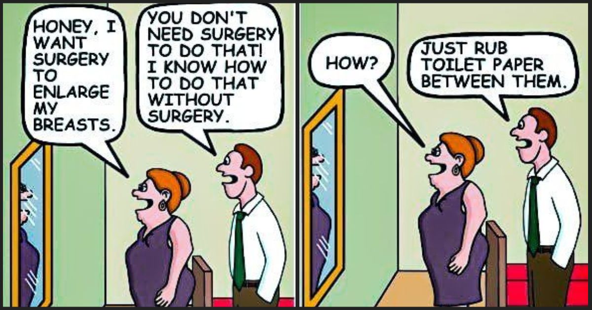 A woman returns from the doctor thrilled she has “the breasts of an 18-year-old.” Her husband ruins the moment by asking what the doc said about her “45-year-old ass.” Her retort? Cold, swift, and funny enough to make you wince.