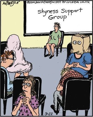 An introvert’s nightmare: being asked to share in a circle. Bonus points for the woman literally hiding under a paper bag.