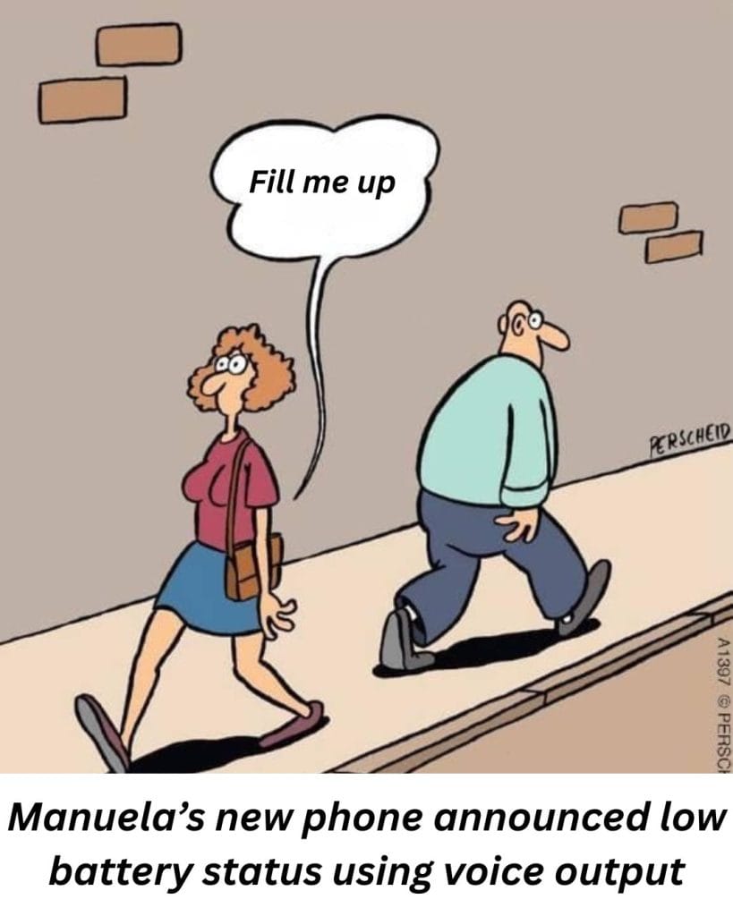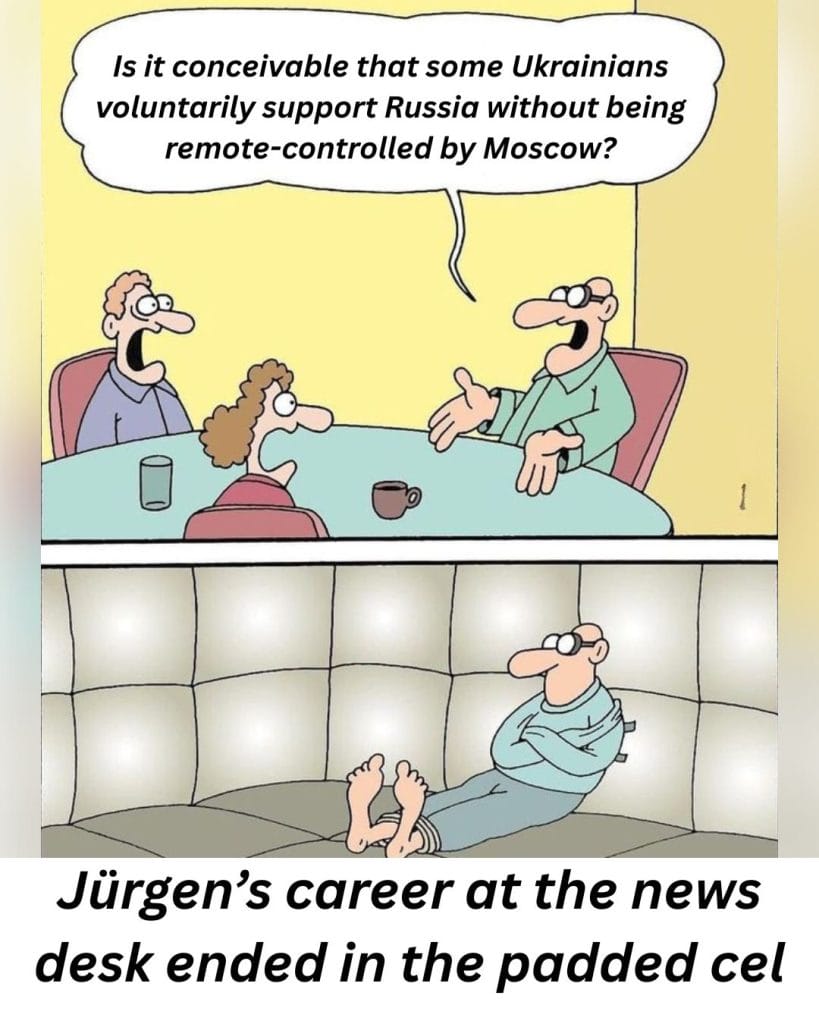 Here we see Perscheid poke fun at the idea of blind fan support. A cheerful man strolls past with a wagon full of bricks, presumably ready to express appreciation through airborne masonry. The absurdity lies in the cheerful expression of violence—thank you, but make it painful. It’s satire at its most unexpected, ridiculing modern support culture with a literal twist.