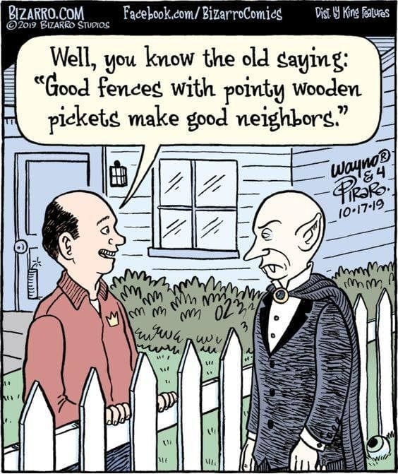 “Good fences make good neighbors,” unless your neighbor is Dracula—then wooden stakes are included.