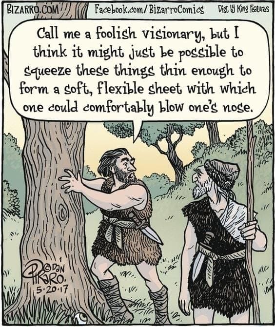 A prehistoric genius imagines tree bark as tissues. You can almost hear the Flintstones cheering.