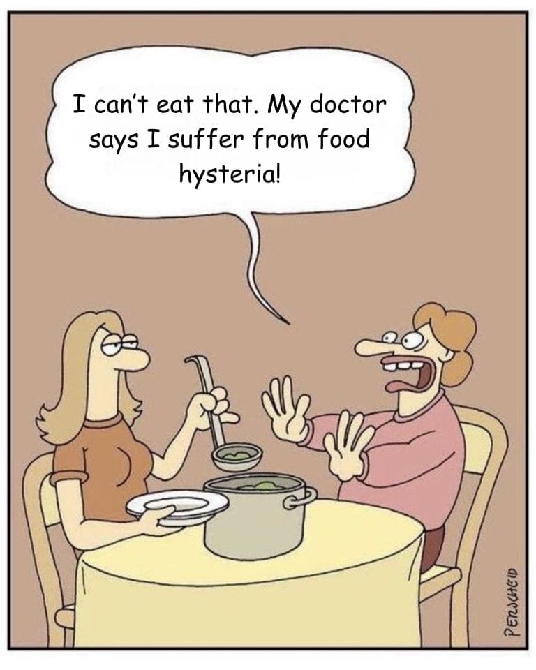 In a brilliant mockery of dietary trends and hypersensitive eaters, this cartoon delivers a hysterical punch. One diner dramatically refuses a bowl of soup, claiming his doctor diagnosed him with “food hysteria.” The woman ladling the soup stares at him like he’s completely lost it—which he has. This strip pokes fun at the ever-expanding world of dietary restrictions, turning it into theater. It’s one of those dark humor cartoons that manages to be both timely and timeless.
