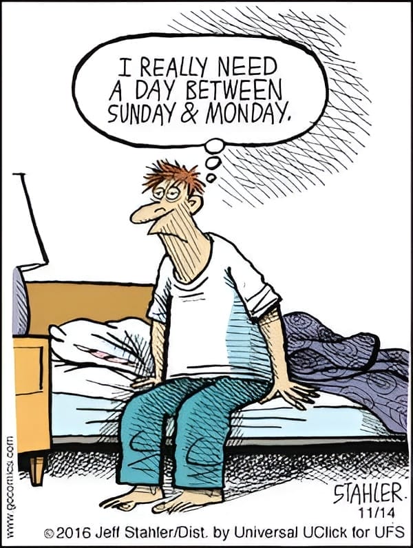 Who hasn’t wished for an extra day before Monday? Stahler captures weekend despair in one sleepy panel.