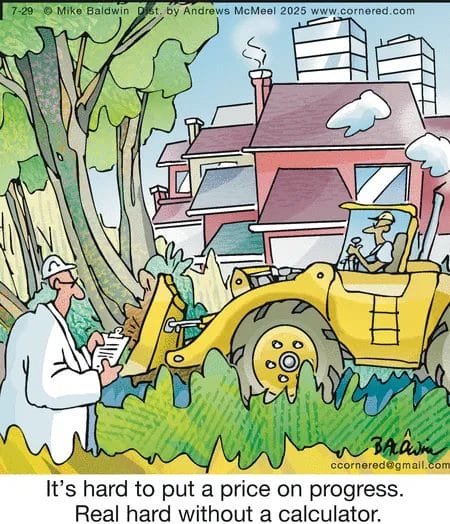 A satire on construction budgets—because “hard to price” means something different in bureaucrat-speak.