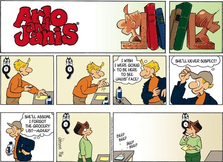 Arlo sets a trap—forgetting the grocery list so Janis assumes he’s messed up again. The twist? He wants her to think that. It’s marriage mind games in comic strip form and absolutely hilarious for anyone who’s ever faked forgetfulness to dodge a chore.
