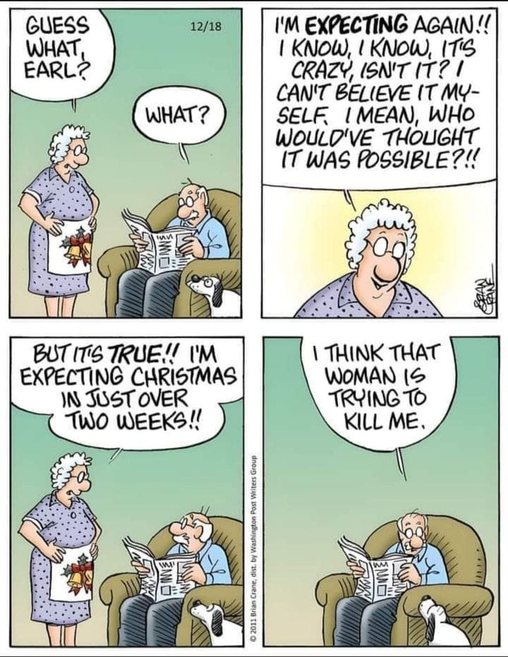 Nothing screams holiday cheer like writing cards to people you can’t remember. This comic nails the awkward honesty of aging, forgetfulness, and the social pressure of festive etiquette.