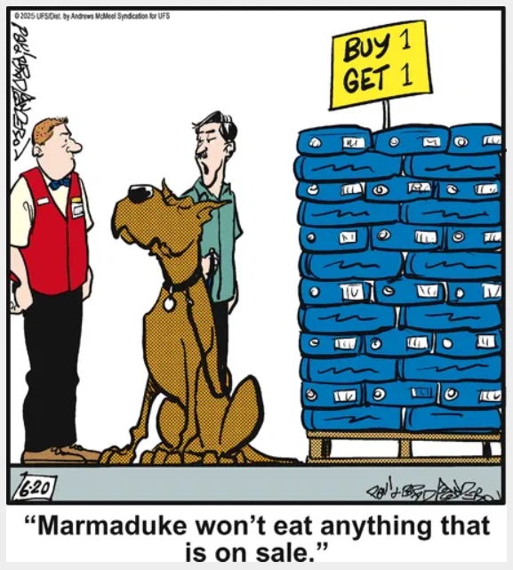 #7 “Marmaduke Won’t Eat Anything That Is on Sale.”
