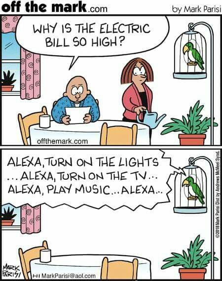 Alexa fatigue hits hard when your parrot starts parroting it. Mark Parisi’s twist on smart home life is clever and oddly plausible.