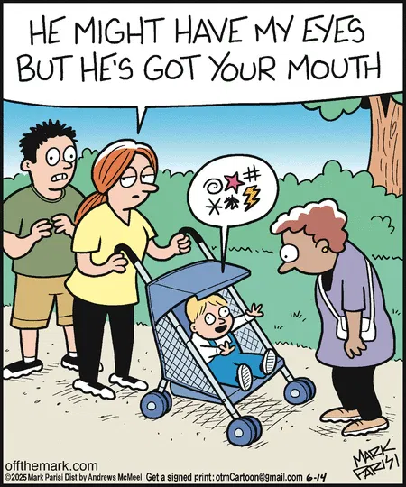 That wraps up our favorite Funny Cartoons Today by the brilliant Mark Parisi. Each panel packs a full laugh in a single frame—quick, witty, and oddly insightful. Whether you’re a longtime fan or just discovering Off the Mark, these comics are proof that the best humor is often found in life’s little absurdities.