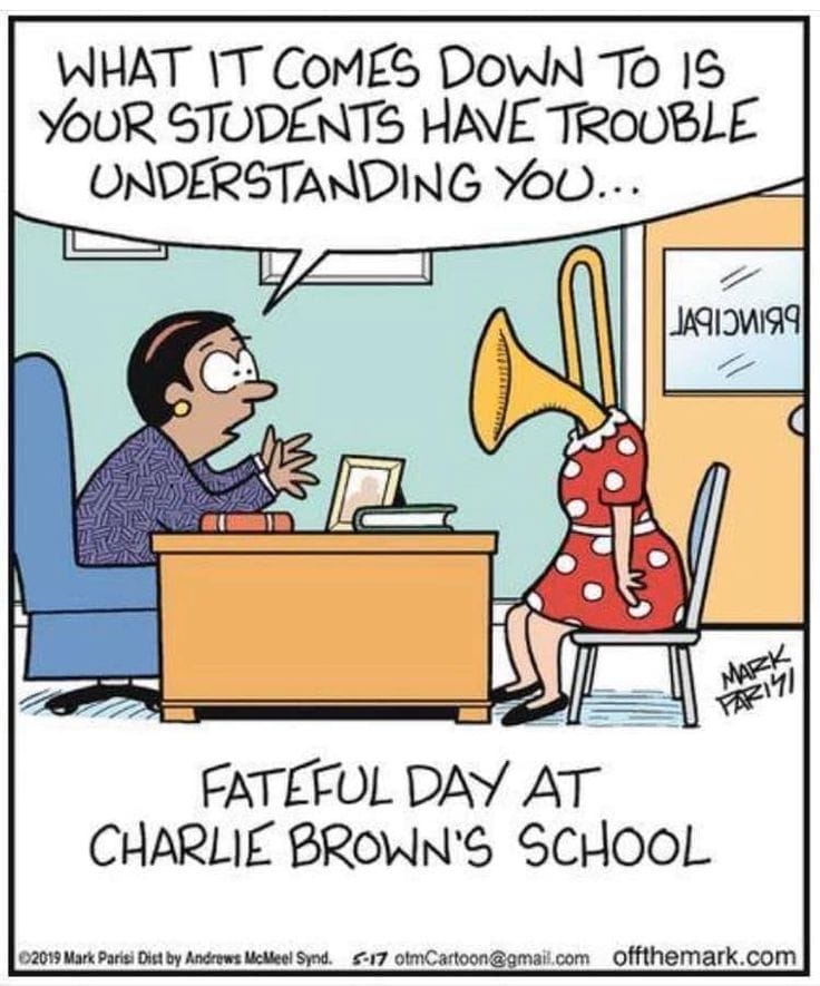 What if a Peanuts teacher tried teaching real kids? This comic hilariously visualizes that nightmare with a literal “wah-wah-wah” moment.