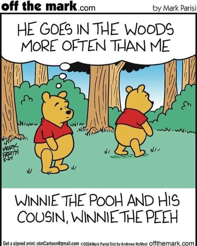 “Winnie the Peeh” has unfortunately earned his name. Parisi blends classic character with bathroom humor for a hilariously wrong-right combination.
