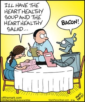 Forget heart health—this robot only cares about bacon. Mark Parisi nails AI priorities better than Silicon Valley.