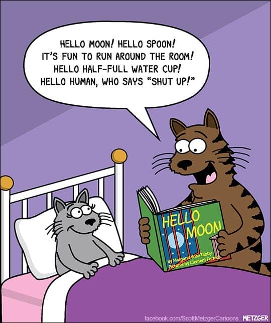 Metzger’s comics have appeared in greeting cards, books, magazines, and viral memes shared by pet lovers worldwide. He doesn’t just draw pets — he translates their sarcastic inner monologues into pure comic gold. His signature humor is dry, witty, and spot-on for anyone who’s ever wondered if their cat is plotting world domination or just annoyed the food bowl isn’t full. Now, let’s dive into 20 of his funniest cat cartoons — a brilliant blend of fur, frustration, and feline truth bombs.