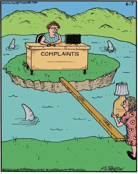Got feedback? Be prepared to cross a plank over shark-infested waters. This brilliant exaggeration of corporate complaint handling feels… suspiciously accurate.
