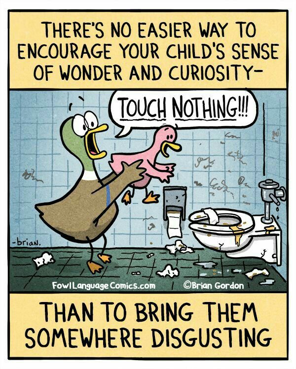 Wherever you go, disaster follows—usually the farther from home, the more urgent the bathroom needs. Funny Parenting Comics don’t lie!