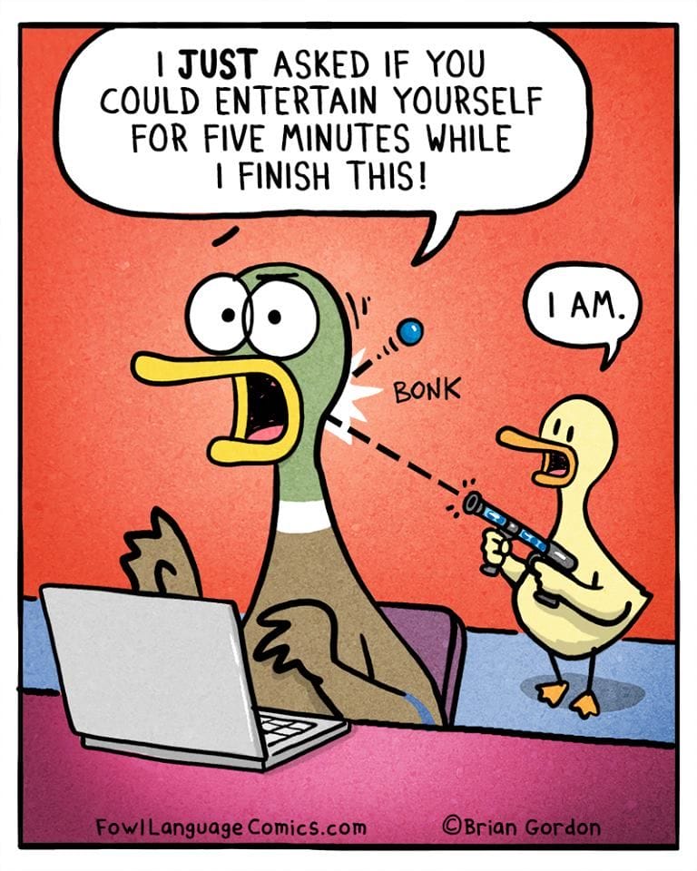Credit: All comics featured are the genius work of Brian Gordon. To see more, visit the official Fowl Language Comics website, follow on Facebook, and check out Instagram. Gordon’s style is as original as it is hilarious—nobody draws exhausted ducks quite like him.