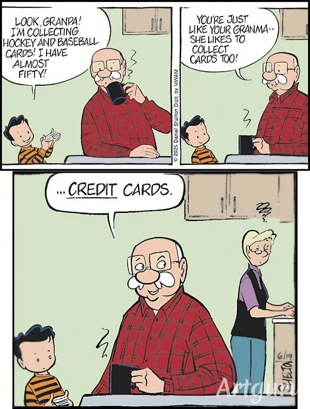 Ben’s grandson is proudly collecting baseball cards. Ben nods and says Grandma collects cards too… credit cards, that is. It’s a perfectly executed generational misunderstanding — with a financial twist that hits home for adults.