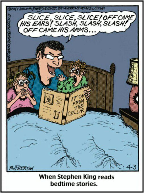 Children’s bedtime tales just got terrifying. This comic wonders: what if Stephen King read your kids to sleep? Spoiler: no sleep would happen.