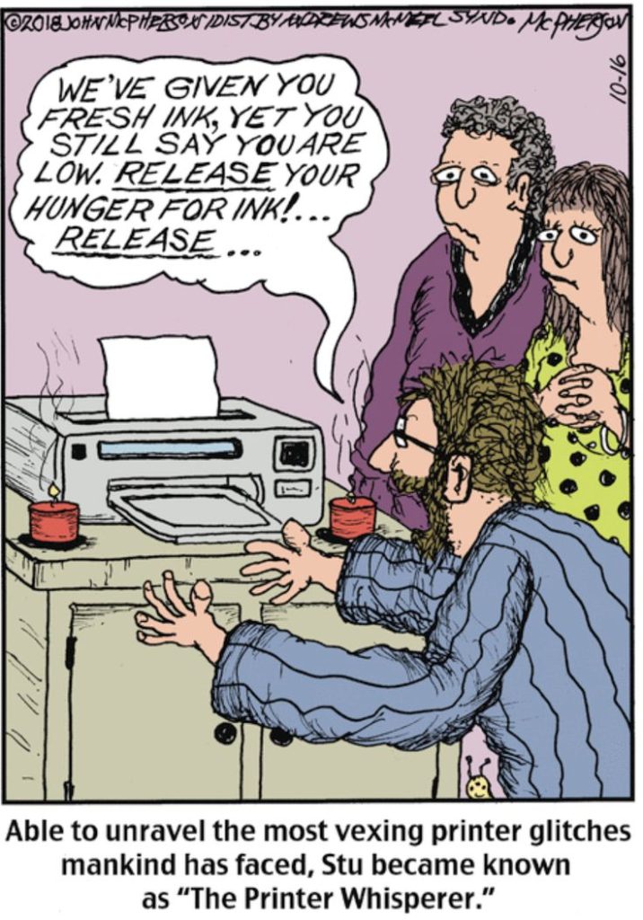 We all know that one guy who speaks fluent “printer.” This comic captures the spiritual (and slightly cult-like) ritual of convincing the office printer to obey.