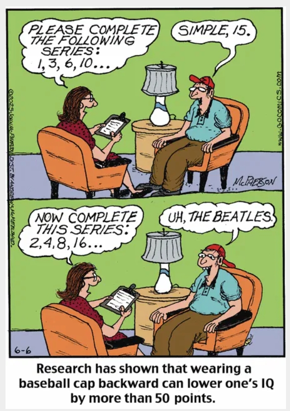 Math tests meet fashion fail in this goofy comic that hilariously critiques the backward baseball cap as an instant IQ drainer. Poor guy never saw it coming.