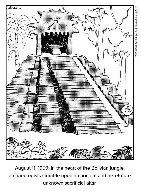An elaborate sacrificial altar… with a wheelchair ramp. It’s wrong, it’s right, it’s Larson.