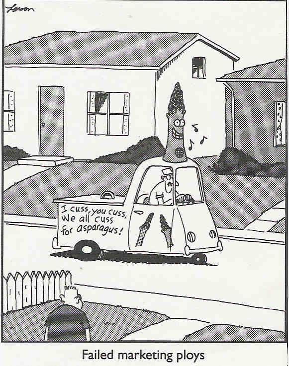 Failed marketing ploys: the asparagus ice cream truck with a rhyming slogan that guarantees no one’s appetite survives.