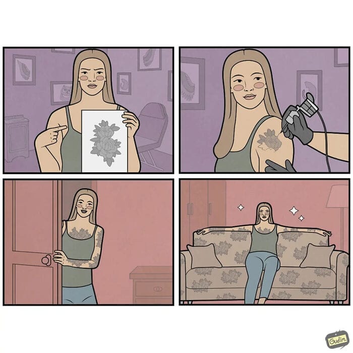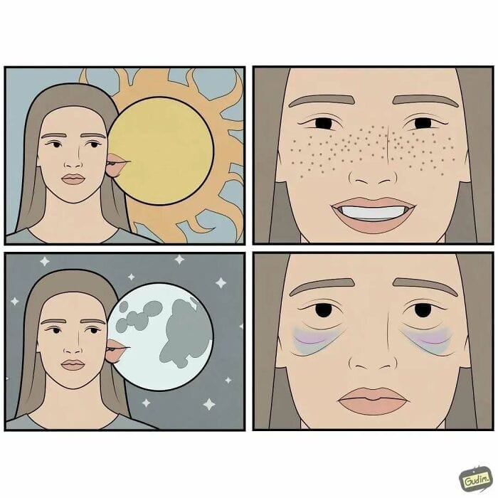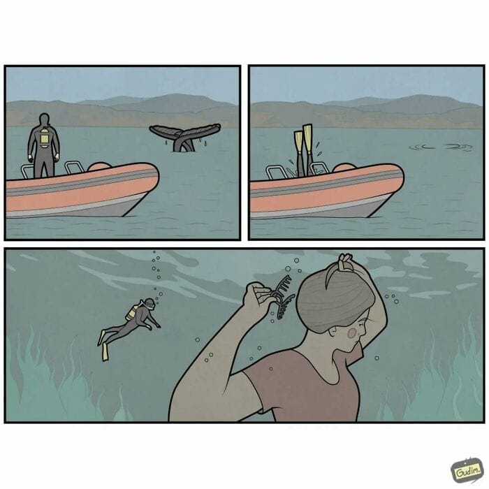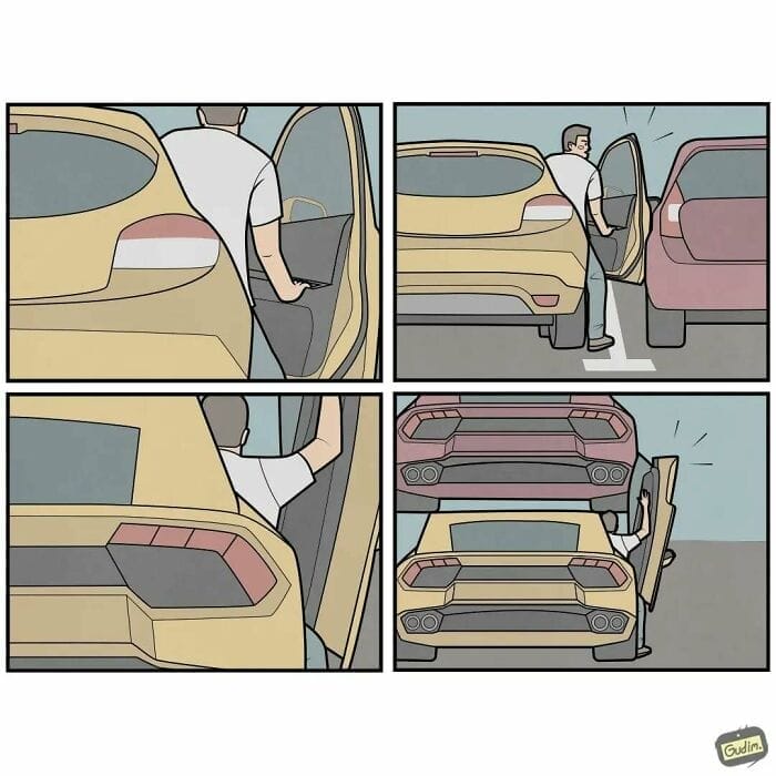 Anton Gudim has gained over 1 million followers on each of his comic accounts drawing in fans with his distinctive creations. However, his journey into the world of art wasn’t straightforward. As Anton explained, I studied and graduated with a degree in engineering focusing on mathematics. I found my work as an engineer unfulfilling and felt the need for something more. This dissatisfaction led him to reconnect with his childhood hobbies now approached with a more mature perspective, which he applies to his comics to make them both relatable and thought-provoking.