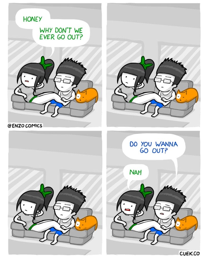 The artist Enzo created the webcomic “Enzo Comics.” He is well-known for his comedic comics with unexpectedly gloomy endings. We’re talking about the popular webcomic series “about life, dating, relationships, and occasionally about sex, drugs, and web design.” The show is well-known for its scathing analysis of modern life, which it does without censorship or filters. And right now, Enzo is finally going retro, sporting the best comics from the preceding four years.