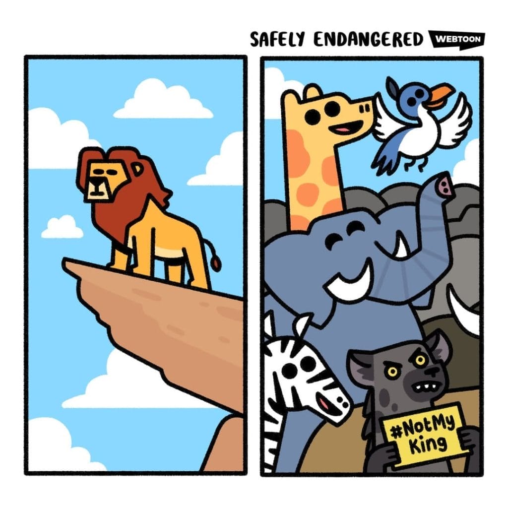 Animals revolt against their new king, refusing to bow. Lion King vibes meet protest humor in a savage parody.