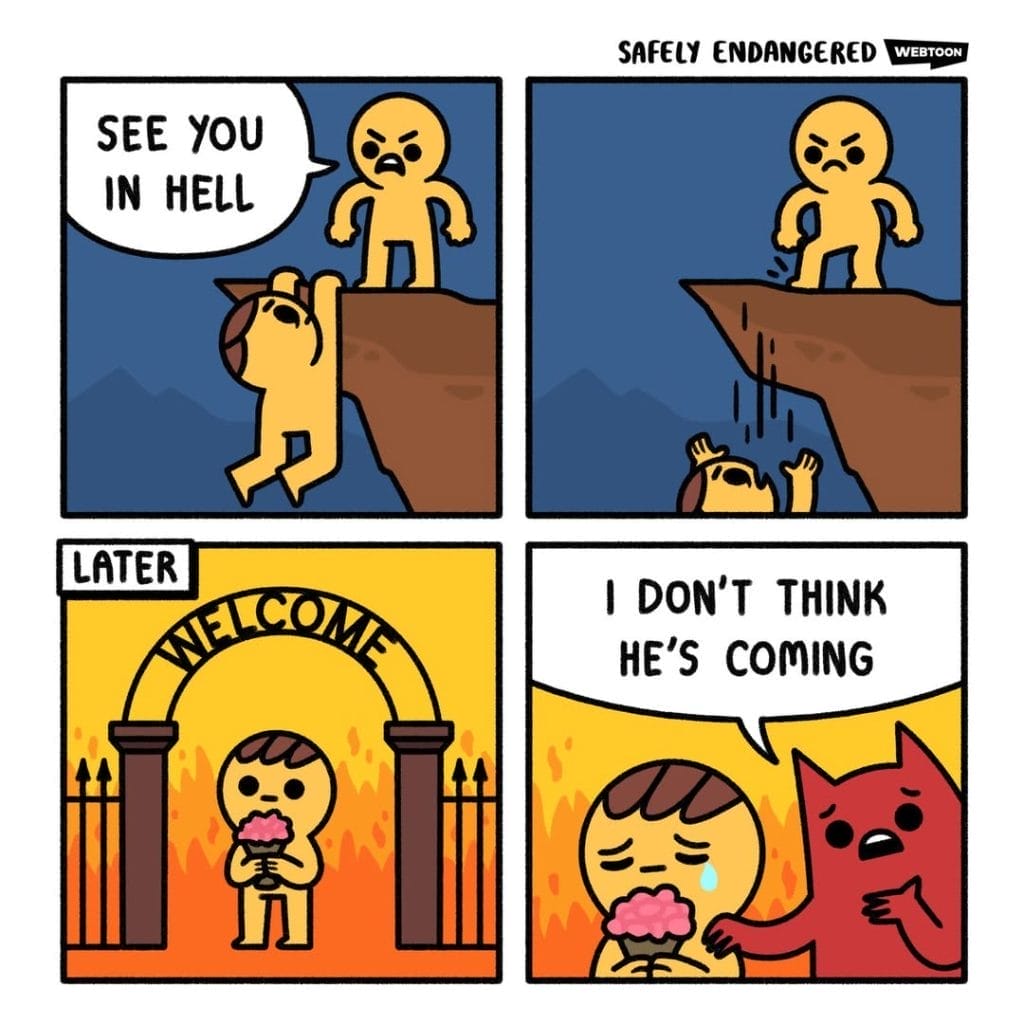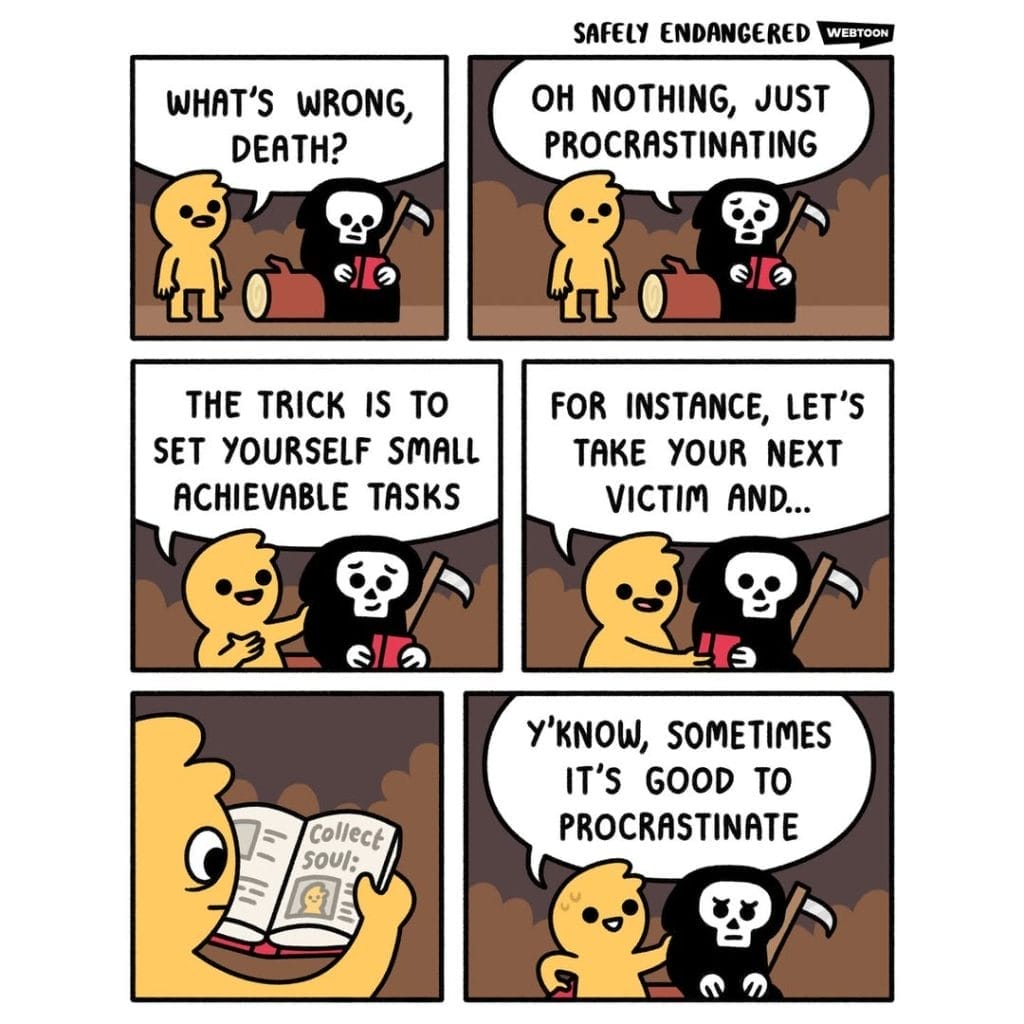 These 20 Safely Endangered comics are proof that dark humor and cute art are a killer combination. James Chapman’s ability to flip wholesome moments into twisted endings is what keeps fans coming back. Whether it’s death personified or a talking brain in crisis, these panels are as clever as they are chaotic.
