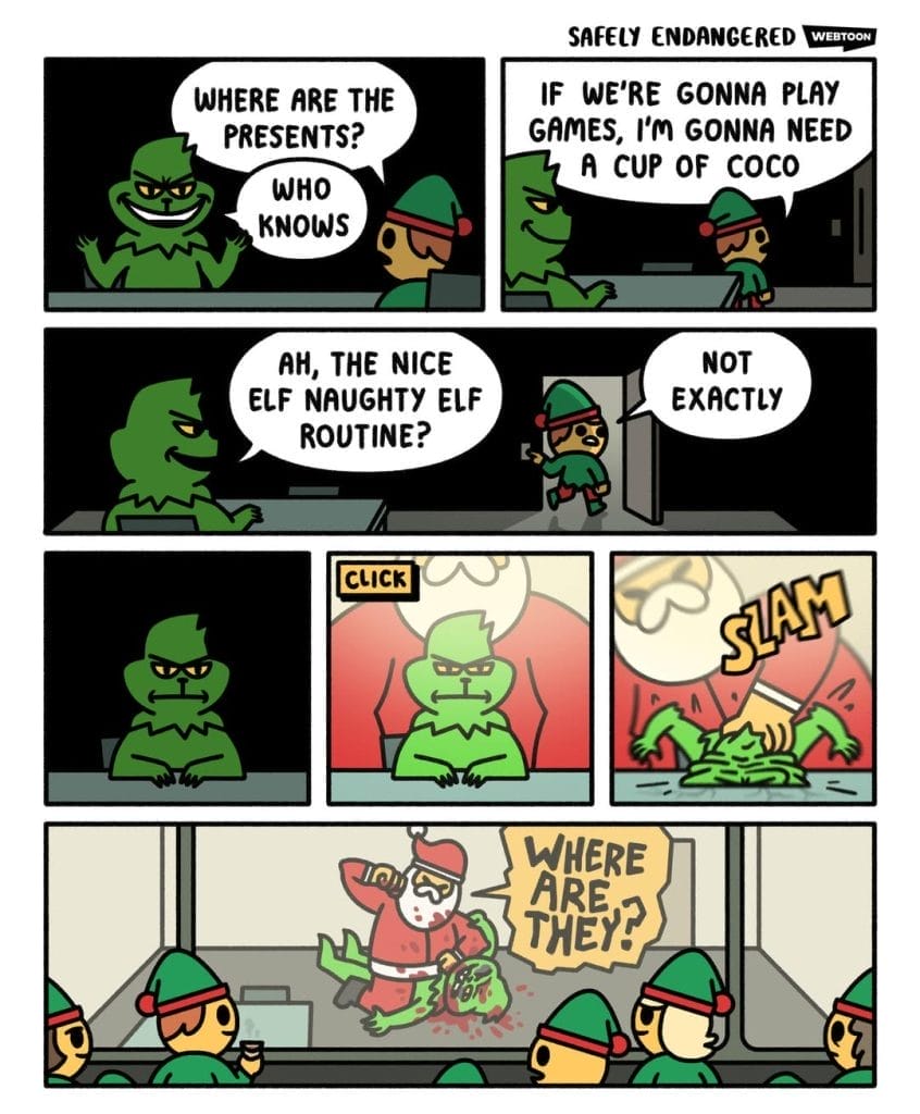 Santa and his elves interrogate the Grinch CIA-style. Christmas gets dark fast—and it’s hilariously uncomfortable.