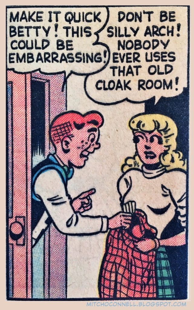 Awkward triangle moment, and yes, Betty is definitely watching. Archie’s sweat beads deserve their own spin-off strip.
