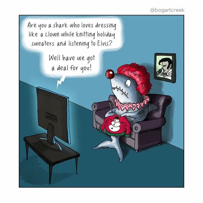 By the way, Derek was lucky enough to find a publisher (Renegade Arts Entertainment) for his first cartoon collection, which will hit stores at the end of March. So if he finds his black humor to be as awesome as we are, he can learn more about it on his website at bogartcreek.com.