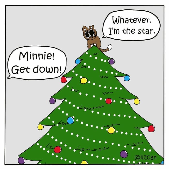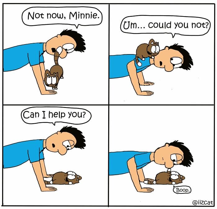Nick Filippou’s comics focus on his life with his cat Minnie. These fun and relatable cartoons capture everyday moments that cat owners will surely recognize and enjoy. Nick’s straightforward drawing style perfectly conveys the humor and charm of life with a furry friend. Minnie, his real-life rescue cat, is the star of the show, and her antics always bring a smile to readers. What started as a way to make his girlfriend laugh has turned into a successful art journey, with Nick’s work evolving over time. He now has more than 135,000 followers on Instagram. Occasionally, his comics include other characters like a dog or a baby, adding even more humor and variety.