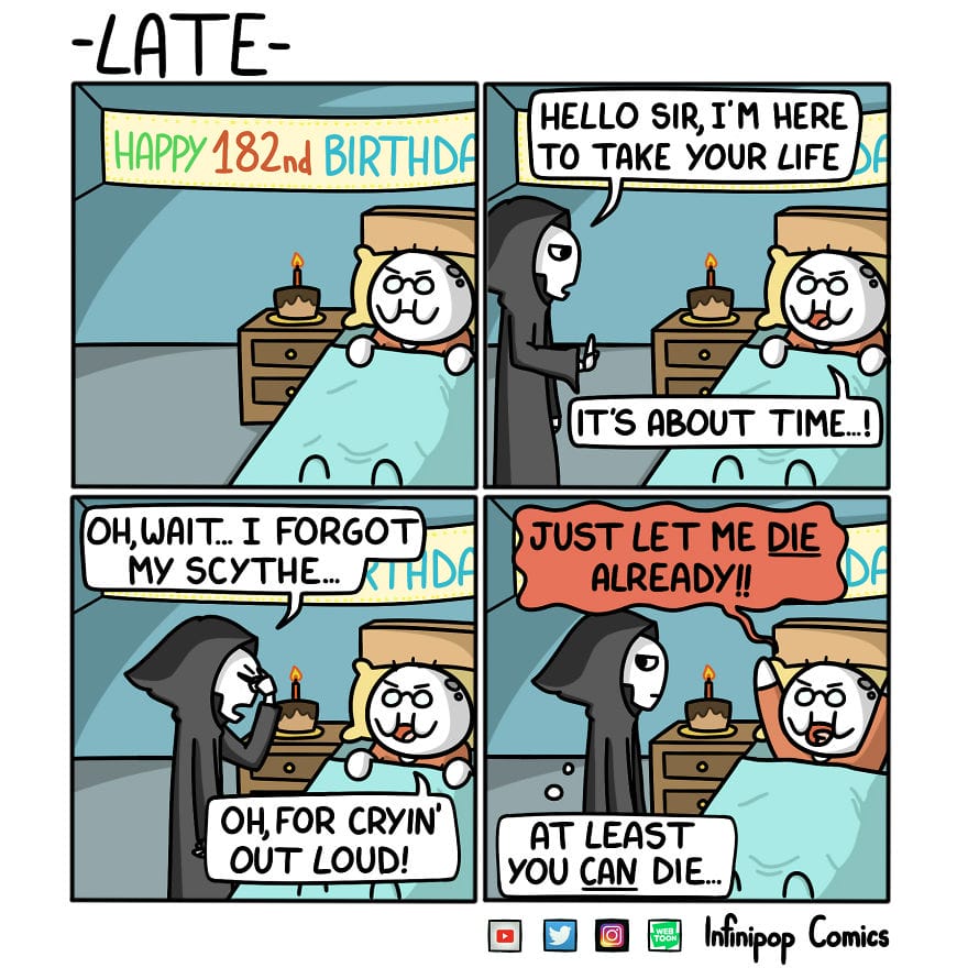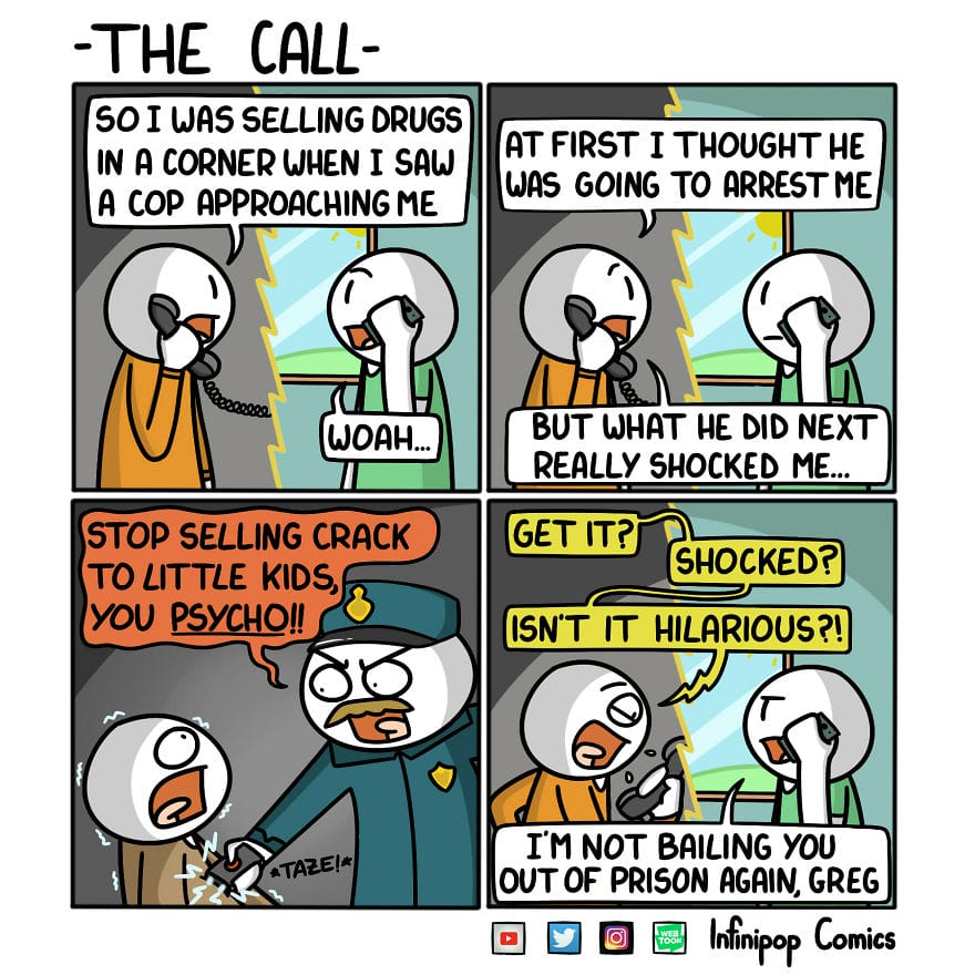 Instagram, with its visual appeal and widespread user base, has been the ideal platform for Infinipop Comics to flourish. Oliver’s ability to craft concise yet hilarious comics has made them perfectly shareable, allowing fans to tag their friends and spread the laughter like wildfire. As his audience grew, Oliver began crafting short comic strips that touched on various aspects of modern living. One of the defining features of Infinipop Comics is their ability to evoke genuine laughter and brighten even the dullest of days. Oliver has an uncanny knack for transforming ordinary situations into comedic gold, taking his readers on a journey filled with chuckles, guffaws, and the occasional snort of amusement. Let’s take a look at some of his best illustrations.