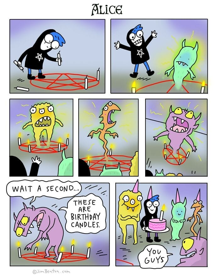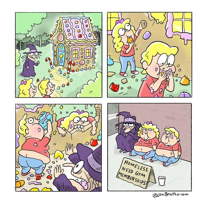 Jim Benton, a 63-year-old comic artist, is still making people laugh with his clever and witty illustrations. Known for his versatility, Jim’s style changes from comic to comic, allowing him to showcase his wide-ranging talent for creating unique and engaging artwork. With over 51K followers on Instagram, Benton regularly shares his comics but his creativity doesn’t stop there. He has also created beloved characters for books such as It’s Happy Bunny Dear Dumb Diary, Franny K. Stein, and Catwad. Although Jim has gained recognition for his work, he remains grounded and humble. As he puts it The world is full of really terrific artists I’m just happy when anybody likes anything I do.