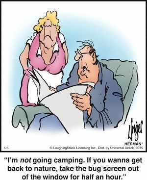Why go camping when you can suffer at home? Unger’s grumpiest character might be onto something.